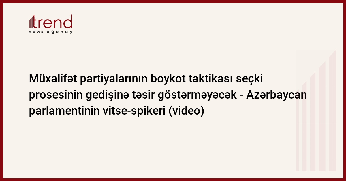 Vitse-spiker hesab edir ki, müxalifətin prezident seçkisinin boykot olunması üçün əsas kimi səsləndirdiyi arqumentlərin heç bir əsası yoxdur: "Azərbaycanda siyasi vəziyyət müxalifətin öz arqumentlərində göstərdiyindən kəskin şəkildə fərqlənir. Siyasi partiyalar ölkədə mövcud olan vəziyyəti öz maraqlarına uyğunlaşdırmamalıdır. Müxalifətin siyasi vəziyyəti öz maraqlarına uyğunlaşdırandan sonra prezident seçkilərində iştirak etmək istəməsi gülünc doğuran mövqedir. Qanunun imkan verdiyi formada bütün siyasi qüvvələr seçkiyə qatılmalı, öz imkan və bacarıqlarını ortaya qoymalıdırlar. Müxalifətin bir qrupunun "bizim maraqlarımız təmin edildiyi təqdirdə seçkiyə qatılacağıq və yalnız onda seçkilər demokratik keçiriləcək" fikrləri isə onların öz imkansızlıqlarını gizlətmək cəhdi kimi qiymətləndirilməldir".