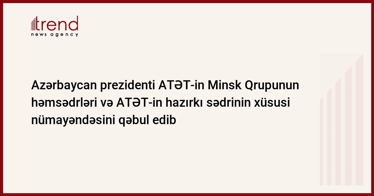 Azərbaycan, Bakı, 27 iyun/ Trend / Azərbaycan prezidenti İlham Əliyev cümə günü ATƏT-in Minsk Qrupunun fransalı həmsədri Bernar Fasyeni, rusiyalı həmsədri Yuri Merzlyakovu, amerikalı həmsədri Metyu Brayzanı və ATƏT-in fəaliyyətdə olan sədrinin xüsusi nümayəndəsi Anji Kaspşiki qəbul edib.