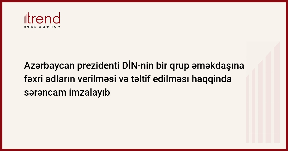 Dövlət başçısının digər sərəncamı ilə DİN-nin bir qrup əməkdaşı "Vətən uğrunda" və "İgidliyə görə" medalları ilə təltif edilib.