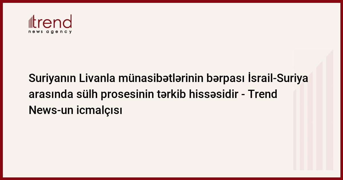 Azərbaycan, Bakı, 23 iyul / Trend , müxbir D.Xatınoğlu/ Suriya XİN başçısı Vəlid əl-Müəllimin iyulun 21-də Beyruta səfər etməsi iki ölkə arasında diplomatik əlaqələrin üç ildən sonra yaranması üçün başlanğıc addım olub. Lakin bu münasibətlərin davamı rəsmi Dəməşqin Livanın ərazi bütövlüyünü rəsmən tanımasından asılıdır. Bu problem həll olunmayınca, İsrailin Colan təpələrini Suriyaya qaytarma ehtimalı da yoxdur.