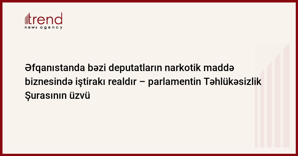 Azərbaycan, Bakı, 06 avqust / Trend , müxbir D.Xatınoğlu/ Əfqanıstan Milli Təhlükəsizlik İdarəsinin sədr müavininin parlamentdəki çıxışı zamanı bəzi deputatların terrorizm və narkotik maddə biznesində əli olduğunu bildirməsi hakimiyytdə bəzi islahatların aparılmasının vacibliyini göstərir. "Əfqanıstanda bəzi deputatların narkotik maddə biznesində əli olduğu realdır. Hakimiyyətdə daha ciddi islahatlar aparılmalıdır", - deyə Əfqanıstan parlamentinin Təhlükəsizlik Şurasının üzvü Xalid Paştun Trend -a bildirib.