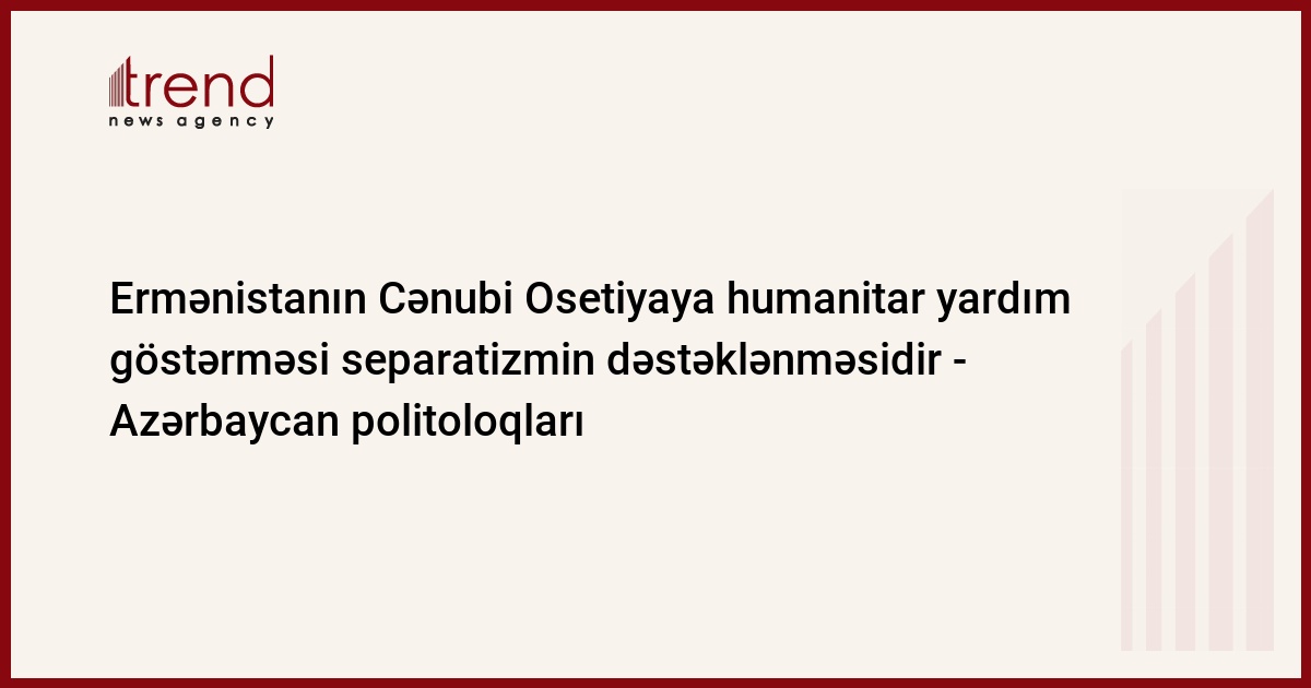 Azərbaycan, Bakı, 14 avqust / Trend , müxbir İ.Əlizadə/ Azərbaycan politoloqları hesab edirlər ki, Ermənistanın Cənubi Osetiyaya humanitar yardım göstərməsi rəsmi İrəvanın separatizmi dəstəkləməsi və Rusiyadan asılı vəziyyətdə olması ilə bağlıdır.