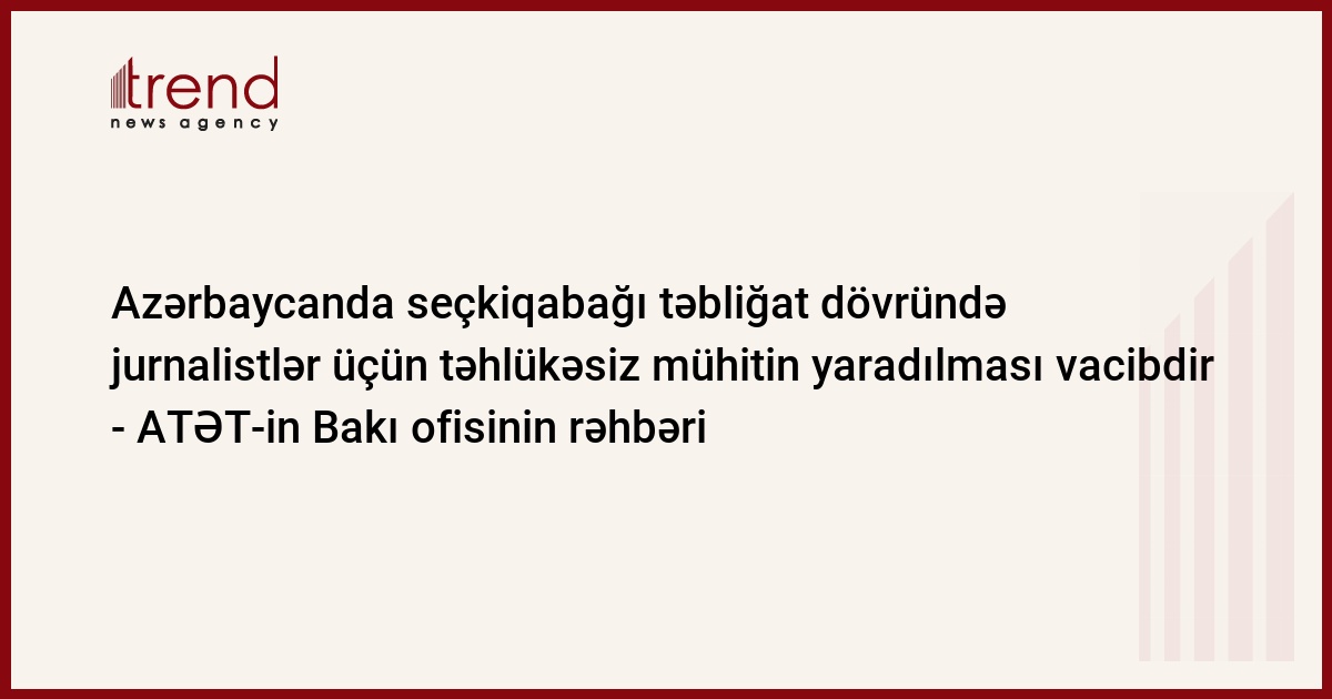 "İctimai tədbirlər zamanı, xüsusilə seçkiqabağı təbliğat dövründə jurnalistlər üçün təhlükəsiz mühitin yaradılması çox vacibdir", - tədbirdə çıxışı zamanı ATƏT-in Bakı ofisinin rəhbəri Xose Luis Herrero bildirib.