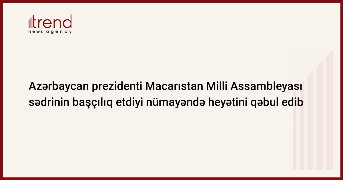 Azərbaycan, Bakı, 05 sentyabr / Trend /Azərbaycan prezidenti İlham Əliyev cümə günü Macarıstan Milli Assambleyasının sədri Katalin Szilinin başçılıq etdiyi nümayəndə heyətini qəbul edib.
