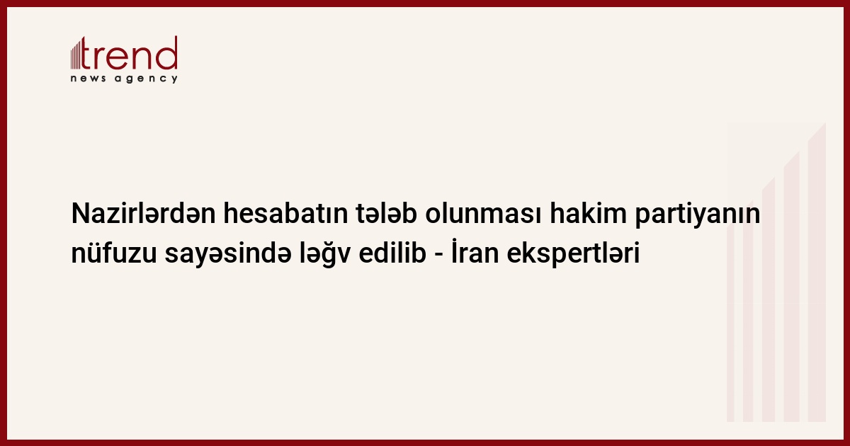 Azərbaycan, Bakı, 08 sentyabr / Trend , müxbir T. Cəfərov/ İranda təhsil nazirinin parlamentdə hesabat (istizah) verməsinin ləğv edilməsinin əsl səbəbi hakim partiyanın nüfuzu, istəyi və növbəti prezident seçkiləri ilə əlaqəlidir.