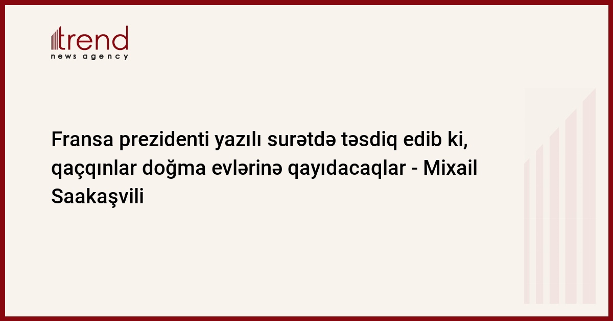 Gürcüstan, Tbilisi, 08 sentyabr / Trend , müxbir N.Kirtsxaliya/ Fransa prezidenti yazılı surətdə təsdiq edib ki, bütün qaçqınların daimi yaşayış yerlərinə qayıtmasını dəstəkləyir, - Gürcüstanın prezidenti Mixail Saakaşvili Aİ-də sədrlik edən fransalı həmkarı Nikolya Sarkozi ilə danışıqların yekunlarını şərh edərkən deyib.