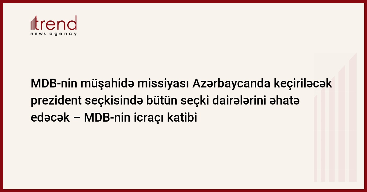 MDB-nin missiyası Azərbaycan XİN-in dəvəti ilə ölkədə prezident seçkisini müşahidə etmək üçün Azərbaycana göndəriləcək.