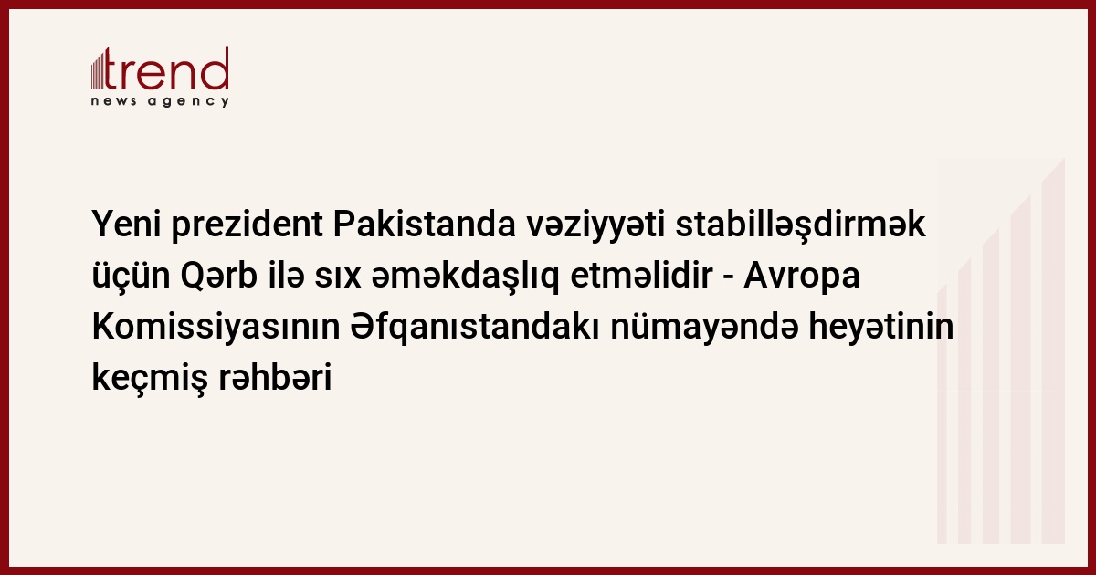 Azərbaycan, Bakı, 12 sentyabr / Trend , müxbir D. İbrahimova/ Avropanın Siyasətin Təhlükəsizliyi və İnkişafı İnstitutunun elmi əməkdaşı, Avropa Komissiyasının 2002-2006-cı illərdə Əfqanıstandakı nümayəndə heyətinin keçmiş rəhbəri Karl Harbo (Karl Harbo) hesab edir ki, Pakistanda iqtisadi və siyasi vəziyyəti stabilləşdirmək üçün yeni prezident Asif Əli Zərdari Qərblə sıx əməkdaşlıq etməlidir.