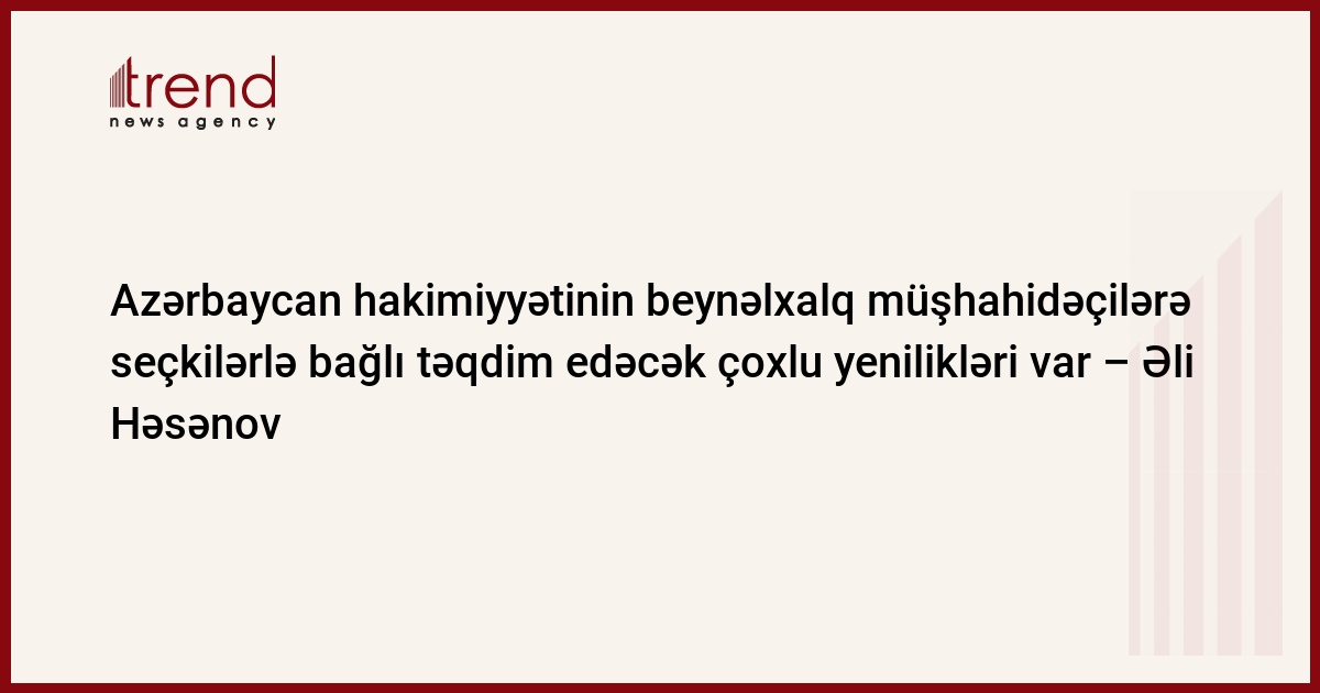 Azərbaycan, Bakı, 16 sentyabr / Trend , müxbir K.Zərbalıyeva/ Son günlər Azərbaycana prezident seçkiləri ilə bağlı beynəlxalq müşhahidəçilərin səfərlərinin artması Azərbaycanda keçiriləcək prezident seçkilərinə beynəlxalq aləmin diqqətinin göstəricisidir. Bunu çərşənbə axşamı jurnalistlərə açıqlamasında Prezidentin İcra Aparatı ictimai-siyasi şöbəsinin müdiri Əli Həsənov bildirib.