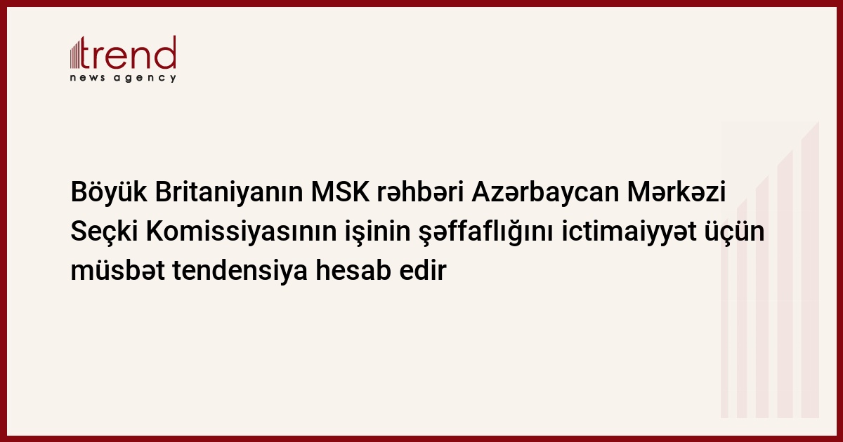 Fransa, Strasburq, 02 oktyabr/ Trend , müxbir C.Babayeva/ Böyük Britaniyanın Mərkəzi Seçki Komissiyasının rəhbəri Azərbaycan Mərkəzi Seçki Komissiyasının (MSK) işinin şəffaflığını ictimaiyyət üçün müsbət tendensiya hesab edir.