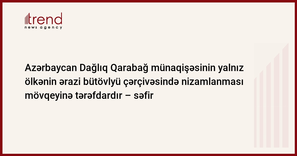 Azərbaycan, Bakı, 03 oktyabr / Trend , müxbir N.Abdullayeva/ Azərbaycan Dağlıq Qarabağ münaqişəsinin yalnız ölkənin ərazi bütövlyü çərçivəsində nizamlanması mövqeyinə tərəfdardır.