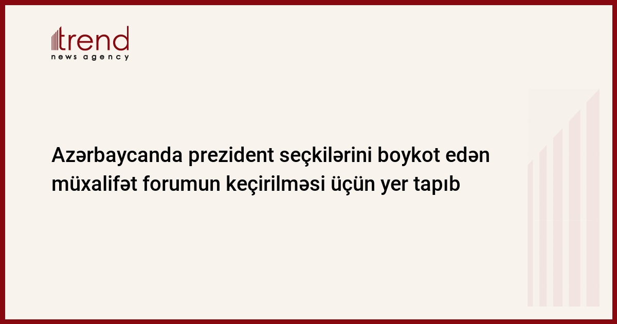 Trend - un arayışı: Azərbaycanda prezident seçkisi oktyabrın 15 - də keçiriləcək. Sentyabrın əvvəlində "Azadlıq" blokuna daxil olan partiyalar - Xalq Cəbhəsi, Liberal Partiya, Vətəndaş və İnkişaf partiyası, Müsavat Partiyası və "Azərbaycan Naminə" İctimai Forum prezident seçkisinin nəticələrini tanımamaq barədə birgə bəyanat imzalayıblar. Bəyanatda prezident seçkisindən sonra formalaşacaq hakimiyyət qeyri - legitim elan edilib.