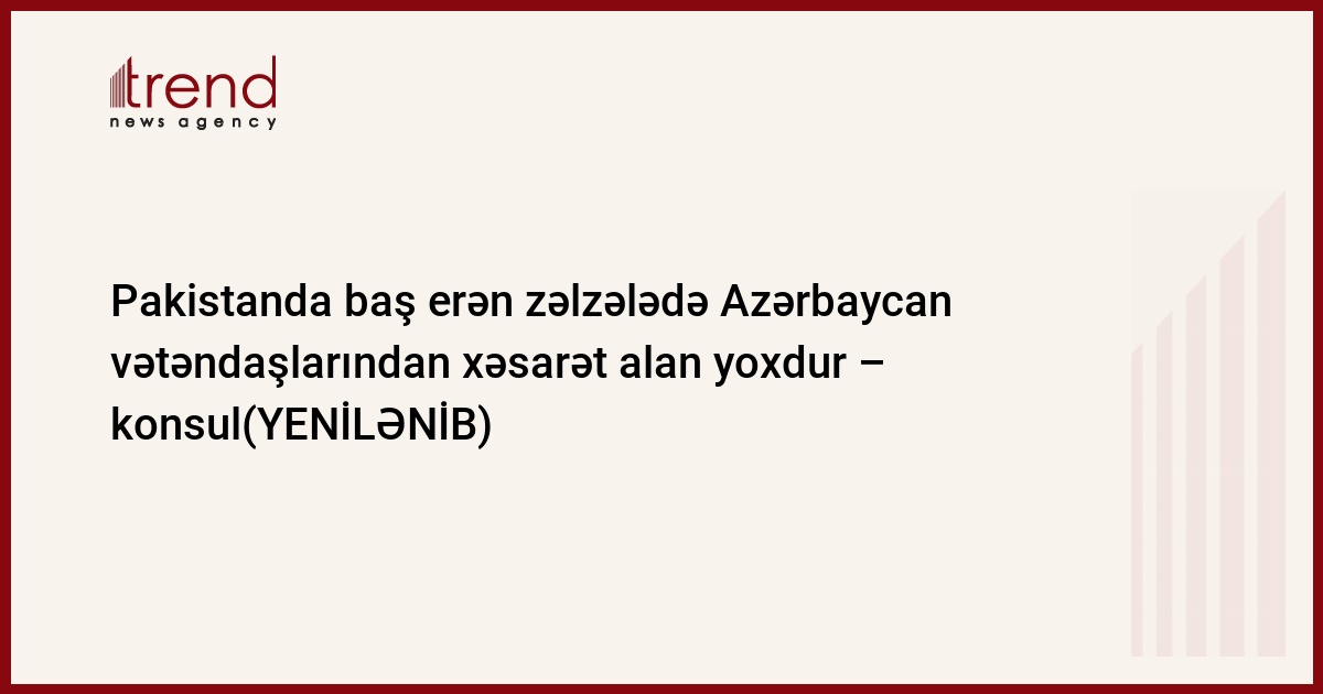 Konsul qeyd edib ki, bu gün səhər Pakistanda iki zəlzələ qeydə alınıb. Səhər saat 4:00 və 5:10 radələrində. İlkin məlumatlara əsasən xəsarət alanlar arasında Azərbaycan vətəndaşları yoxdur. Belə ki, onlar əsasən Pakistanın paytaxtında və Kəraçi şəhərində yaşayırlar. Zəlzələ baş verən ərazilərdə azərbaycanlıların olması ehtimalı azdır.