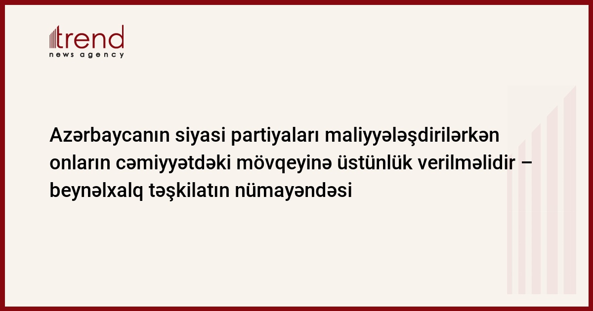 Azərbaycan, Bakı , 12 noyabr/ Trend , müxbir R.Novruzov/ Avropa Şurasının Azərbaycan üzrə həmməruzəçisi hesab edir ki, siyasi partiyalar dölət büdcəsindən maliyyələşdirilərkən partiyaların təkcə ölkə parlamentində təmsil olunması deyil, onların cəmiyyətdə nüfuzu nəzərə alınmalıdır.