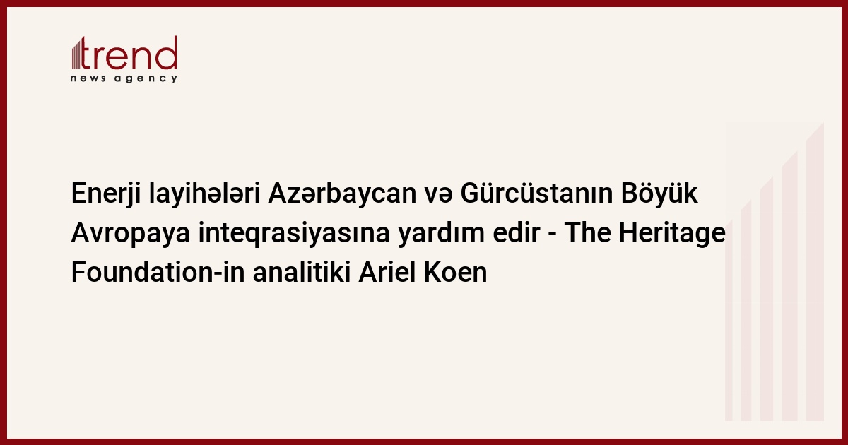Azərbaycan, Bakı, 14 noyabr/ Trend , müxbir V.Javoronkova/ Enerji layihələri ikitərəfli və çoxtərəfli münasibətlərin inkişafı üçün yaxşı üsuldur. "Belə növ layihələr Gürcüstan və Azərbaycanın Böyük Avropaya inteqrasiyasına yardım edəcək", - bu gün Bakıda keçirilmiş dördüncü enerji sammitinin yekunlarını şərh edən The Heritage Foundation-in (ABŞ) analitiki, politoloq Ariel Koen cümə günü İsraildən telefonla Trend -a bildirib.