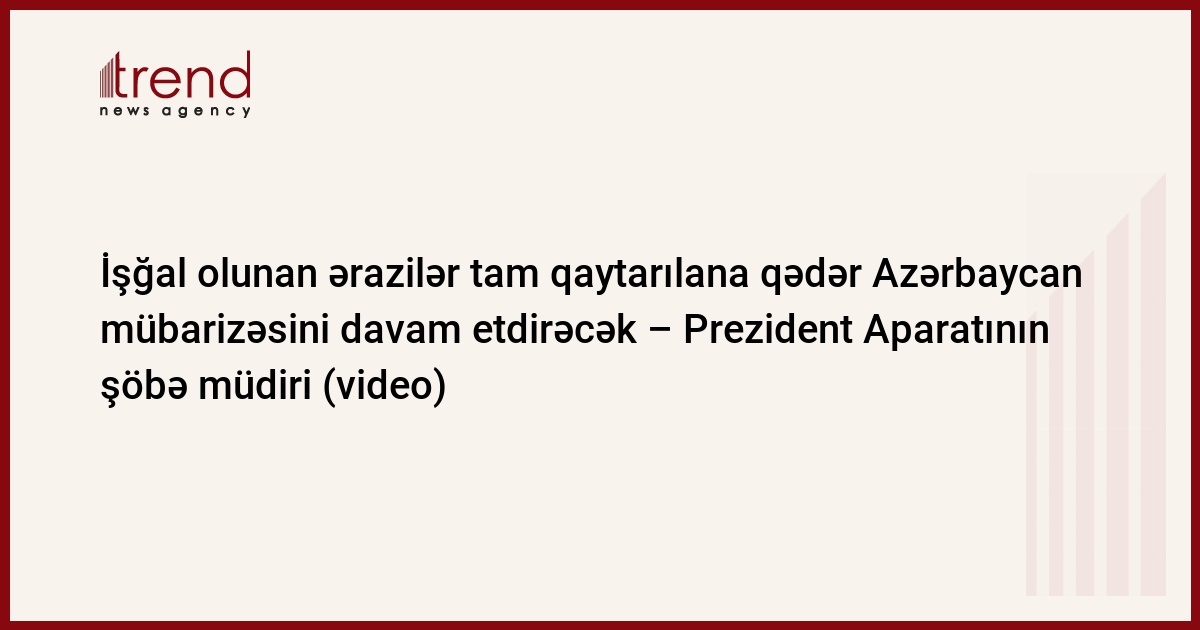 Azərbaycan, Bakı 20 noyabr / Trend , müxbir İ.Əlizadə/ Rəsmi Bakı bəyan edib ki, Ermənistan tərəfindən işğal olunan Dağlıq Qarabağ ərazisi və onun ətrafında yerləşən 7 rayon azad olunana qədər Azərbaycan mübarizəsini davam etdirəcək. "Azərbaycan hakimiyyətinin əsas mövqeyi ondan ibarətdir ki, Dağlıq Qarabağ və onun ətrafında yerləşən 7 rayon Azərbaycanın tərkib hissəsidir və torpaqlar geri qaytarılana qədər biz öz mübarizəmizi və fəaliyyətimizi davam etdirəcəyik". Bu barədə cümə axşamı jurnalistlərə açıqlamasında Azərbaycan Prezidentinin İcra Aparatının Siyasi təhlil və informasiya təminatı şöbəsinin müdiri Elnur Aslanov bildirib.