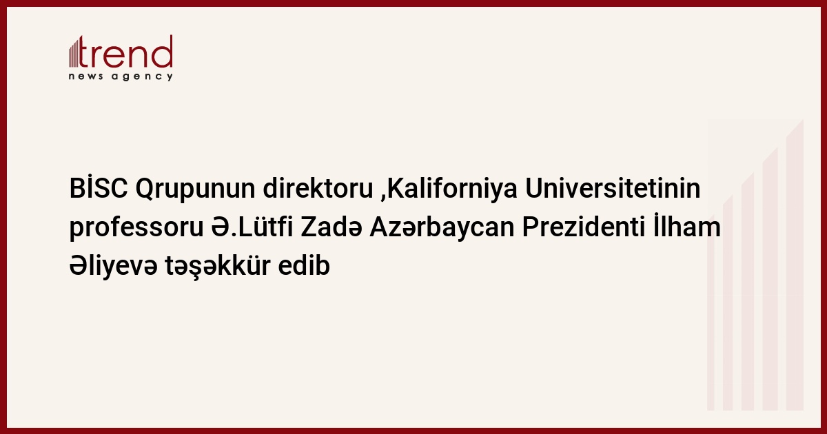 Azərbaycan, Bakı, 24 noyabr / Trend / BİSC (Berkli Proqramlaşdırma Təşəbbüsü) Qrupunun direktoru, Kaliforniya Universitetinin professoru Ə.Lütfi Zadə Azərbaycan Prezidenti İlham Əliyevə təşəkkür edib. "Bakıya səfərim zamanı Sizinlə görüşmək şərəf və imtiyazını mənə bəxş etdiyiniz üçün dərin minnətdarlığımı bildirmək istərdim", - deyə Ə.Lütfi Zadə bildirib. "Nazir Əli Abbasovun dəvəti ilə "BakuTel- 2008" sərgisində iştirak etmək, Azərbaycan alimləri və Berkli şəhərindəki Kaliforniya Universiteti nəzdindəki BİSC (Berkli Proqramlaşdırma Təşəbbüsü) Qrupu alimləri arasında yaxın əməkdaşlığın təməlini qoymaq üçün Berklidən Bakıya gəldim. Bakı doğulduğum və ürəyimdə olduqca xoş izlər qoymuş yerdir. Səfərim zamanı mən şagirdi olduğum 16 nömrəli orta məktəbə də baş çəkdim. Məktəbdə məni böyük səmimiyyət, qonaqpərvərlik və alicənablıqla qarşıladılar. Mən Fəxri xiyabanı ziyarət etdim və atanıza, Azərbaycanın böyük liderinə ehtiramımı bildirdim. Bakı gözəl şəhərdir. İnkişaf əlamətləri hər yerdə nəzərə çarpır. Mədəniyyət, elm və təhsilə göstərilən böyük hörmət məndə olduqca xoş təəssürat yaratdı. Xüsusən Bakını regional kommunikasiya və informasiya texnologiyaları mərkəzinə, Azərbaycanı isə, infosentrik cəmiyyətə keçiddə liderə çevirmək üçün nazir Əli Abbasovun rəhbərliyi altında keçirilən tədbirlər məni çox sevindirdi. Bakıya səfərim hər barədə unudulmaz idi. Sizin şəxsiyyətiniz məndə hər cəhətdən dərin təəssürat oyatdı. Siz dərin qlobal böhranlar dövründə müdriklik, uzaqgörənlik və hərtərəfli maraqlarınız sayəsində Azərbaycanı irəliyə aparırsınız. Sizin kimi Prezidenti olduğuna görə Azərbaycanın bəxti gətirmişdir", - deyə Ə.Lütfi Zadə əlavə edib.