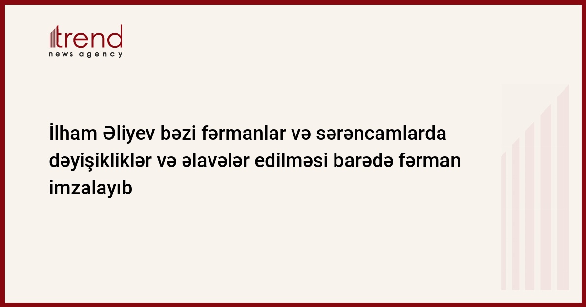 Azərbaycan prezidenti İlham Əliyev bəzi fərmanlar və sərəncamlarda dəyişikliklər və əlavələr edilməsi barədə fərman imzalayıb.
