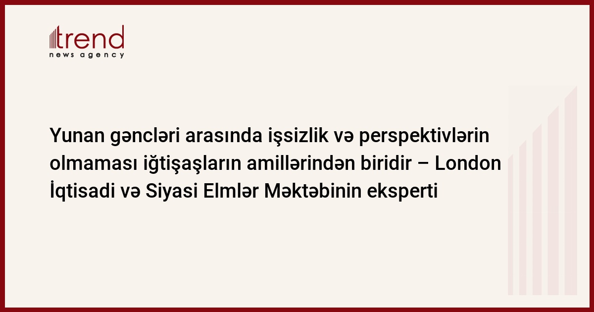 Yunan gəncləri arasında işsizlik və perspektivlərin olmaması iğtişaşların amillərindən biridir – London İqtisadi və Siyasi Elmlər Məktəbinin eksperti
