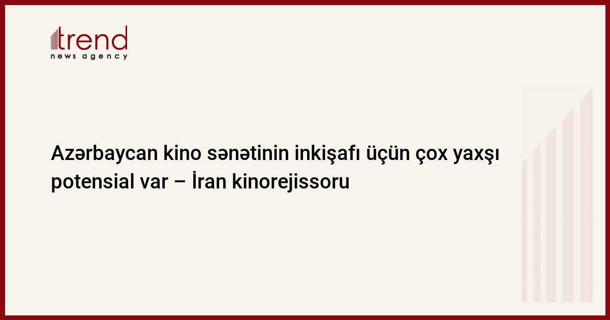 Azərbaycan, Bakı, 26 dekabr / Trend , müxbir T.Cəfərov/ İranın tanınmış kinorejissoru Azərbaycanda kino sənətinin inkişafı üçün yaxşı potensialın olduğunu bildirib.