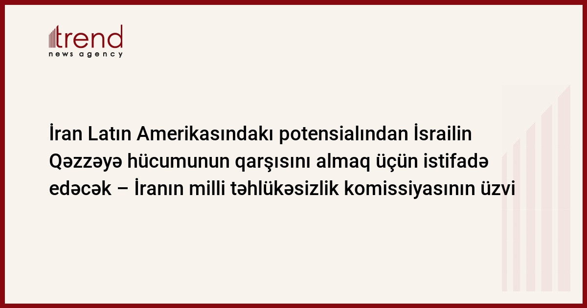 Onun sözlərinə görə, İran çalışır ki, Latın Amerikası və Orta Şərqdə olan bütün imkan və potensialından İsrail qüvvələrinin Qəzzəyə hücumunun qarşısını almaq üçün istifadə etsin.