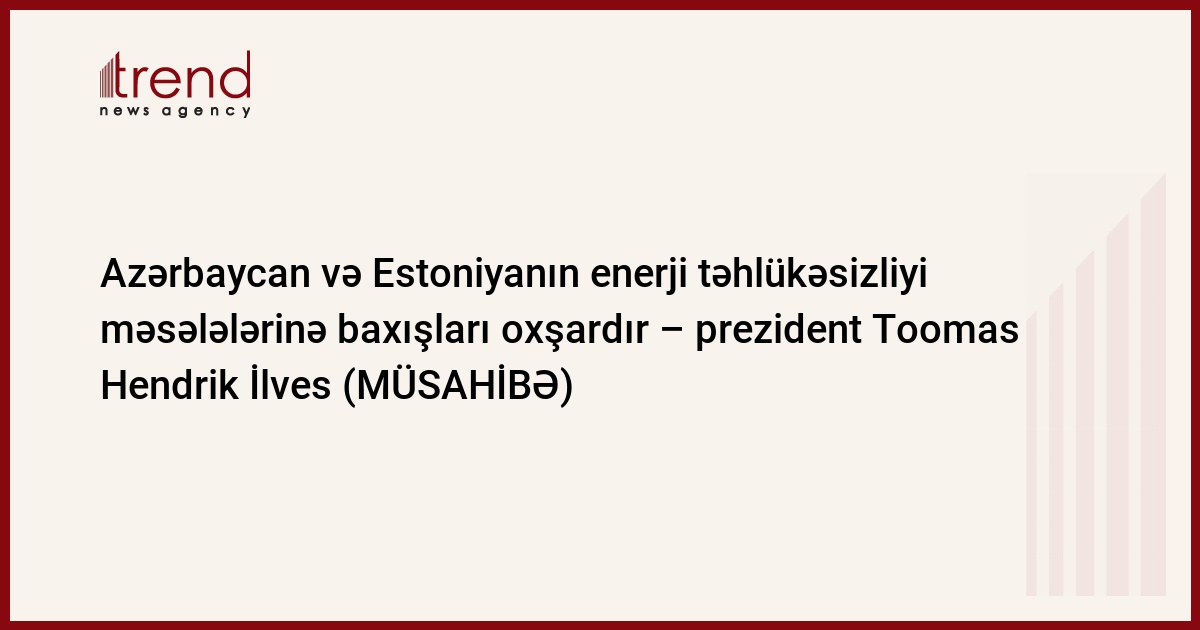 Azərbaycan, Bakı, 08 yanvar/ Trend , müxbir E.Tariverdiyeva/ Trend - un Estoniya prezidenti Toomas Hendrik İlveslə (Toomas Ilves Hendrik) eksklüziv müsahibəsi. Müsahibə, prezidentin yanvarın 12 - də Azərbaycana gözlənilən səfəri ərəfəsində elektron poçtla alınıb.