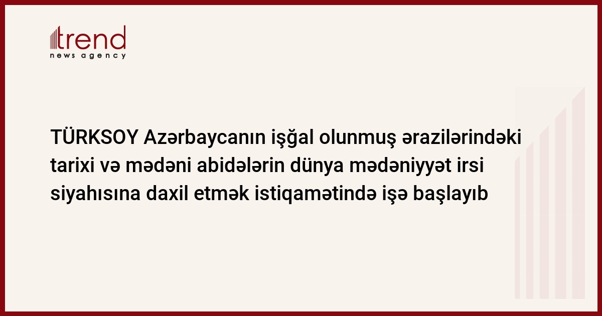 Trend - un arayışı: Azərbaycan tərəfi ölkənin Ermənistan tərəfindən işğal olunmuş ərazilərində mədəni-tarixi abidələrin məhv edilməsilə bağlı araşdırmaların aparılması üçün beynəlxalq təşkilatlara, o cümlədən Avropa Şurasına müraciət edib.