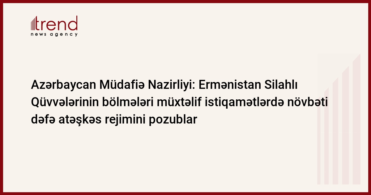 Azərbaycan, Bakı, 19 yanvar / Trend , müxbir K.Zərbalıyeva/ Ermənistan Silahlı Qüvvələrinin bölmələri yanvarın 18-də saat 23.00-dan 23.50-dək fasilələrlə Ermənistan Respublikasının Berd rayonu ərazisində yerləşən adsız yüksəkliklərdəki mövqelərdən Azərbayjan Silahlı Qüvvələrinin Tovuz rayonunun Ağbulaq kəndi yaxınlığında yerləşən mövqelərini;