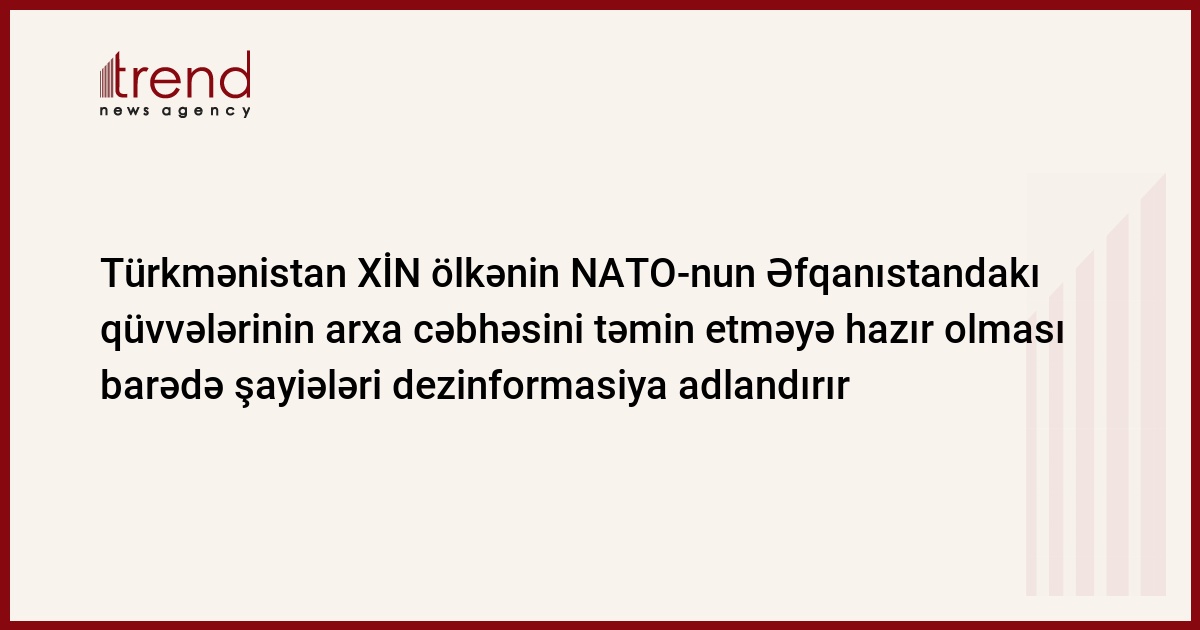 Türkmənistan, Aşqabad, 23 yanvar/ Trend , müxbir E.Həsənov/ Türkmənistan XİN cümə günü Rusiya mətbuatının ölkənin qonşu Əfqanıstanda dislokasiya olunmuş NATO qüvvələrinin arxa cəbhəsini təmin edə bilməsi barədə məlumatını "dezinformasiya" adlandırıb. "Belə yazılar açıq dezinformasiyadır və aydın ifadə olunmuş təxribat xarakteri daşıyır", - idarənin press-relizində deyilir.