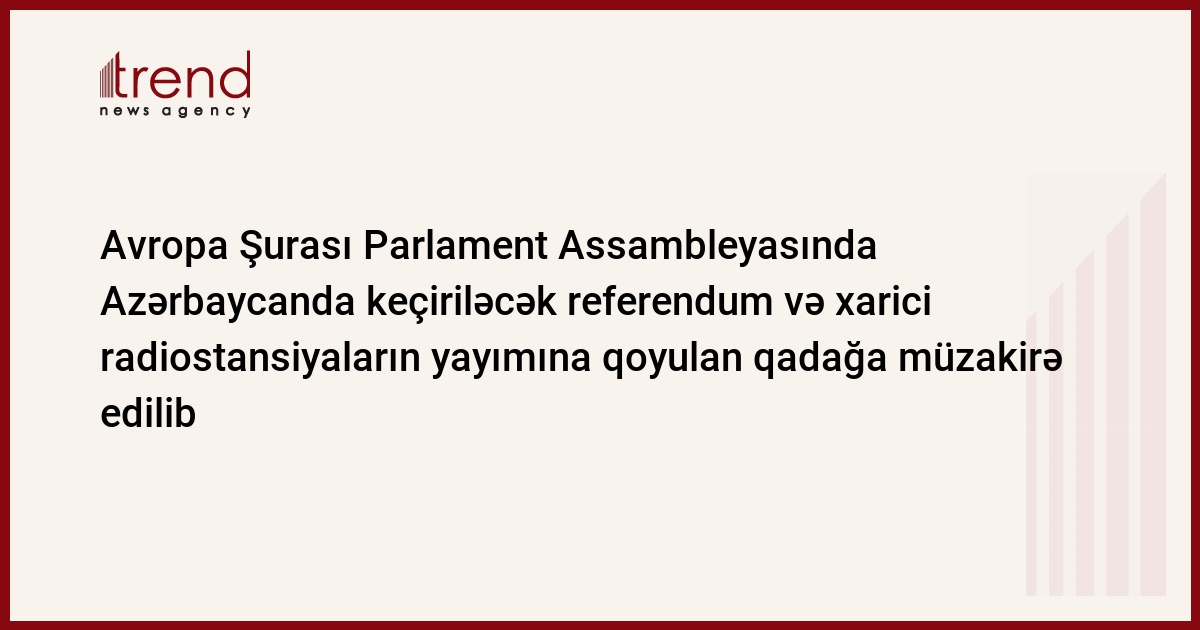 Fransa, Strasburq, 29 yanvar / Trend , müxbir A.Məhərrəmli/ Avropa Şurası Parlament Assambleyasının (AŞ PA) Monitorinq Komitəsinin cümə axşamı keçirilən iclasında Azərbaycanda keçiriləcək referendum və ölkənin milli tezliklərində xarici radiostansiyaların yayımının qadağan olunması məsələləri müzakirə edilib.