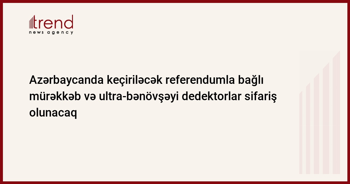 Azərbaycan, Bakı, 03 fevral / Trend , müxbir C.Babayeva/ Azərbaycanda keçiriləcək referendum zamanı istifadə olunacaq gözlə görünməyən mürəkkəb və ultra-bənövşəyi dedektorlar (lampalar) Danimarkadan sifariş olunacaq.