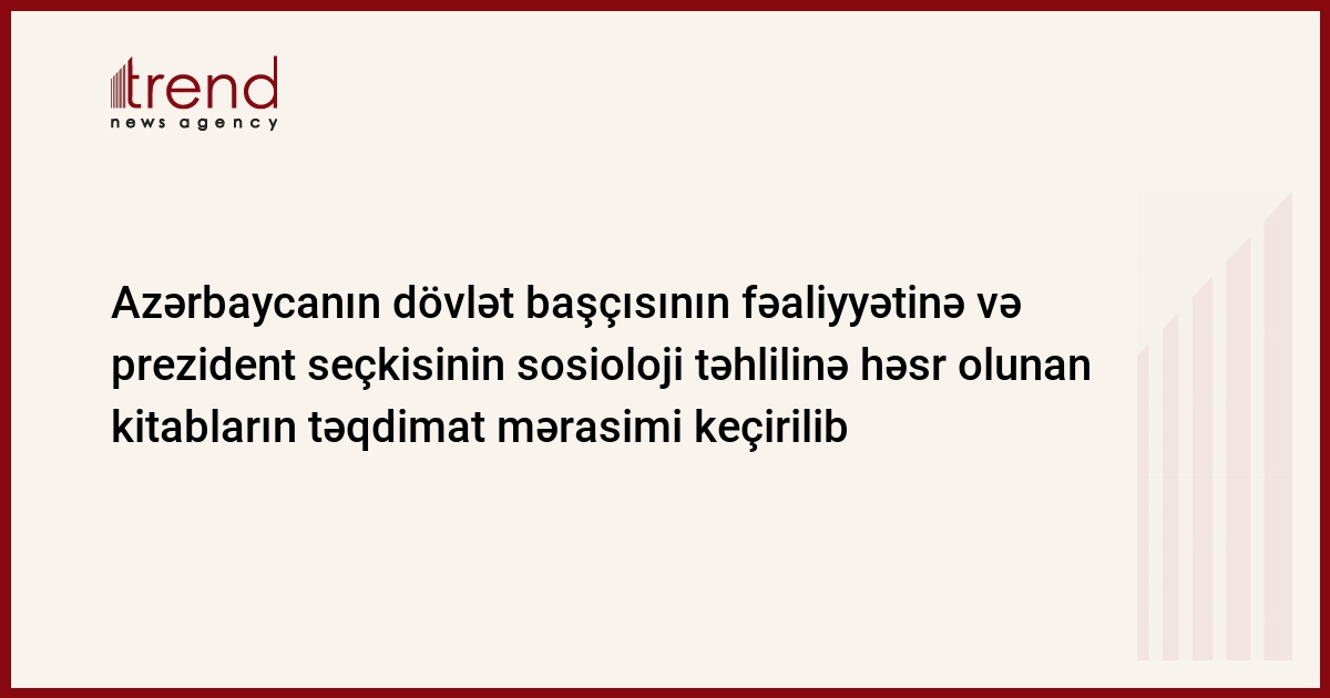 Azərbaycan, Bakı, 10 fevral / Trend , müxbir A.Hüseynbala/ Bu gün Azərbaycan prezidentinin 5 illik fəaliyyəti və ötən il keçirilən prezident seçkilərinin sosioloji təhlilinə həsr olunan kitabların təqdimat mərasimi keçirilib.