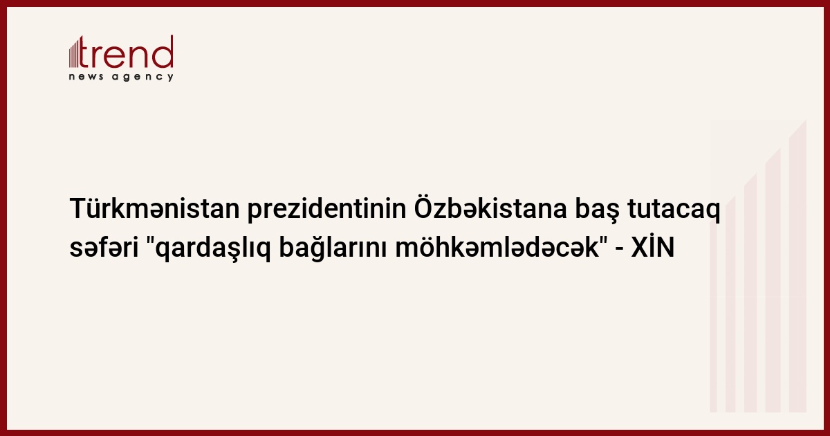 Türkmənistan XİN-in press-relizində deyilir ki, Türkmənistan prezidenti Qurbanqulu Berdıməhəmmədovun 24 fevraldan etibarən Özbəkistana baş tutacaq səfəri "qarşılıqlı əlaqələrə təkan verməklə yanaşı iki qardaş xalq arasında olan bağları da möhkəmləndirəcək".