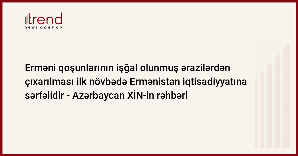 "Erməni qoşunlarının işğal olunmuş ərazilərdən çıxarılması ilk növbədə Ermənistan iqtisadiyyatına sərfəlidir", - Trend -a Kiyevdə, Azərbaycan XİN-in rəhbəri Elmar Məmmədyarov deyib.