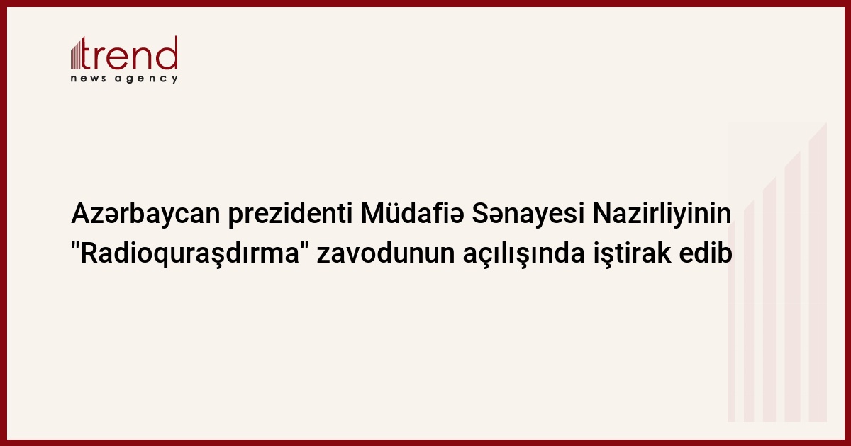 Azərbaycan prezidenti İlham Əliyev bazar ertəsi Müdafiə Sənayesi Nazirliyinin "Cihaz" İstehsalat Birliyinin əsaslı yenidənqurmadan sonra istifadəyə verilən "Radioquraşdırma" zavodunun açılışında iştirak edib, AzərTAc dövlət agentliyi məlumat yayıb.
