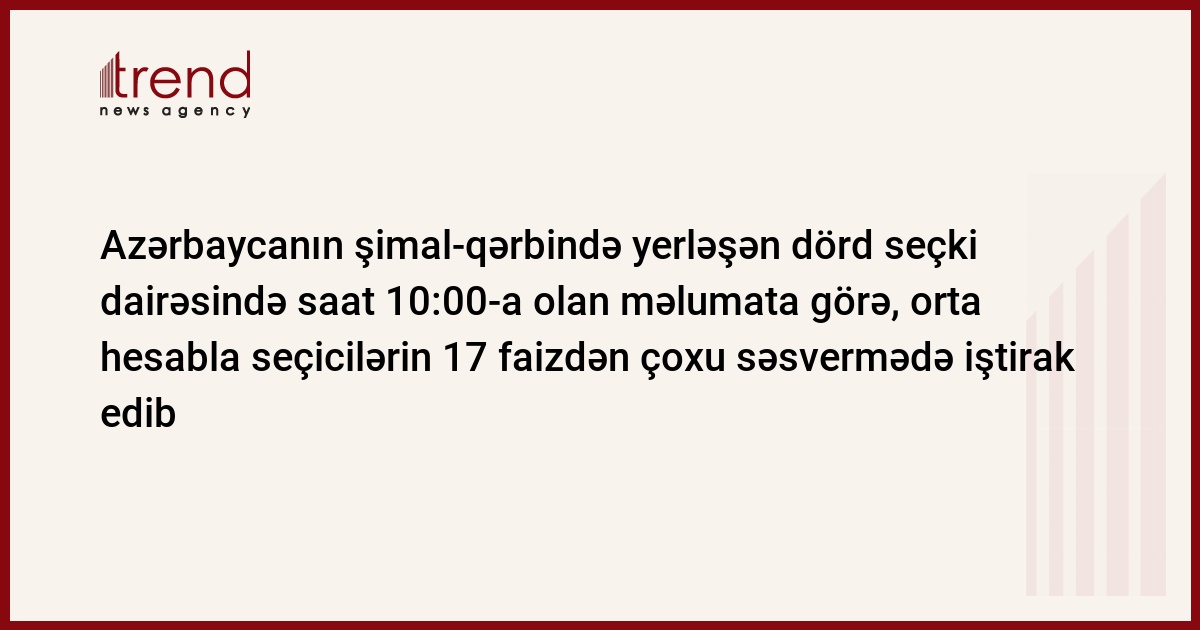 Trend -un bölgə müxbirinə Dairə Seçki Komissiyalarından verilən məlumatına görə, 113 saylı Şəki şəhər dairəsində saat 10:00-a olan məlumata əsasən, seçicilərin 16,52 faizi səs verib.