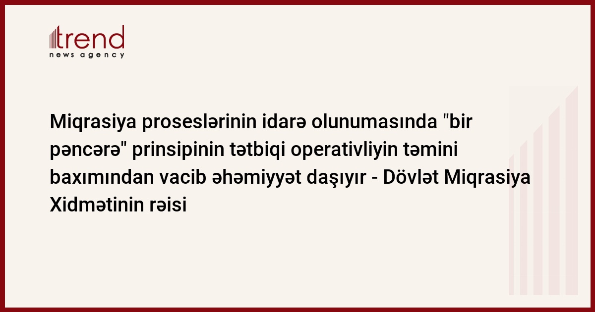Ölkə başçısı bu il martın 4-də Miqrasiya proseslərinin idarəolunmasında "bir pəncərə" prinsipinin tətbiqi haqqında fərman imzalayıb.