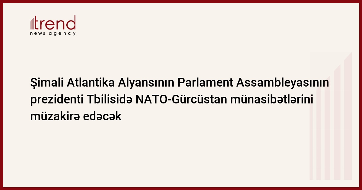Gürcüstan Parlamentindən verilən məlumata əsasən, NATO Parlament Assambleyasının prezidenti Con Tannerin 7-8 apreldə baş tutacaq Tbilisiyə səfəri çərçivəsində Şimali Atlantika Alyansı ilə Gürcüstan münasibətləri müzakirə ediləcək.
