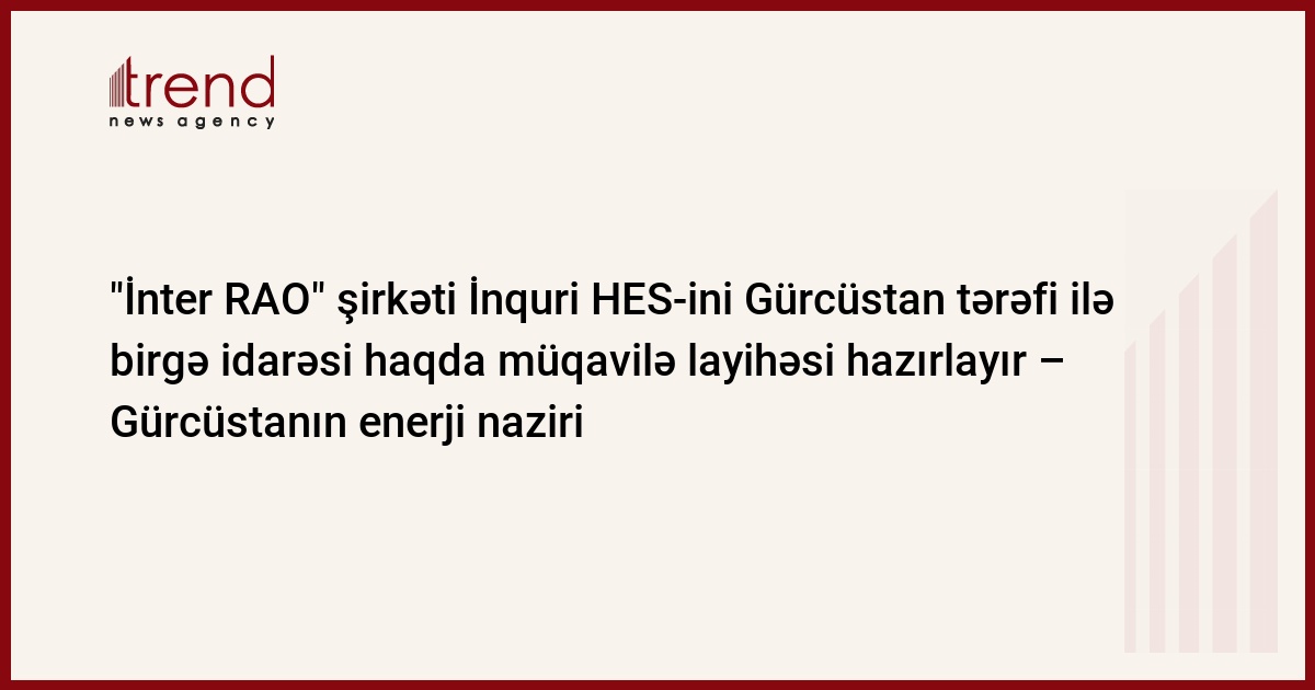 "İnter RAO EES" şirkəti İnquri HES-ini Gürcüstan Enerji Nazirliyi ilə birgə idarəsi haqda müqavilə layihəsi hazırlayır.