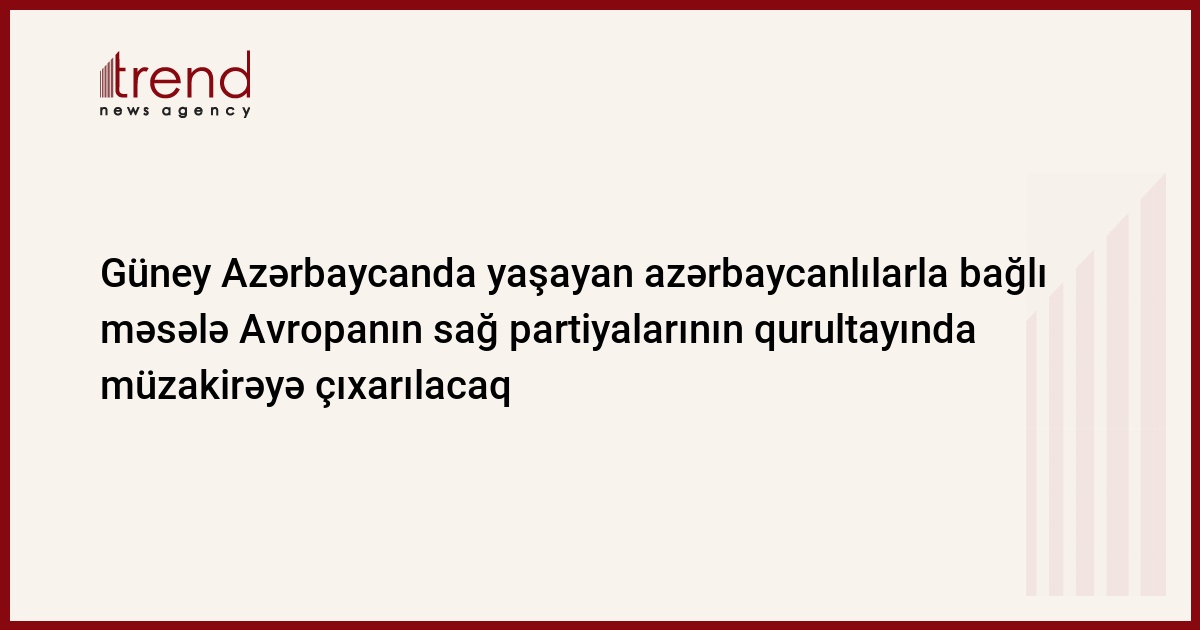 Cənubi Azərbaycanda yaşayan soydaşlarımızın müxtəlif təzyiq və təqiblərlə üzləşməsi ilə bağlı məsələ Avropanın sağ partiyalarının birliyinin qurultayında müzakirəyə çıxarılacaq.