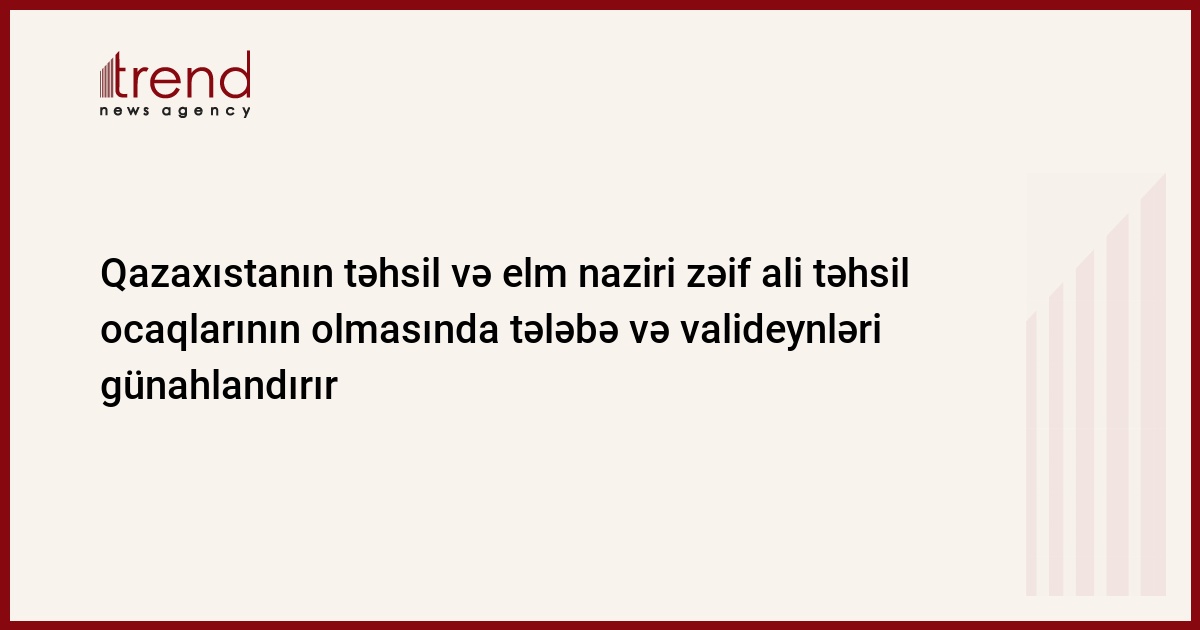 Qazaxıstanın təhsil və elm naziri Janseit Tuymebayev tələbə və valideynləri tədris səviyyəsi keyfiyyətsiz olan təhsil ocaqlarında tədris haqqı ödəməklə onların mövcudluğuna şərait yaratmaqda günahlandırıb.