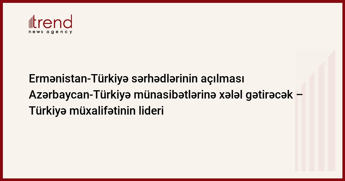 Ermənistan-Türkiyə sərhədlərinin açılması Azərbaycan-Türkiyə münasibətlərinə xələl gətirəcək. Türkiyənin NTV telekanalının cümə günü verdiyi xəbərə görə, bu barədə müxalifətyönlü Respublika Partiyasının lideri Dəniz Baykal bildirib.