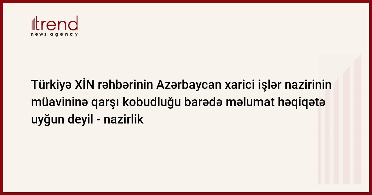 "Yerevanda guya Türkiyənin xarici işlər naziri Əli Babacanın Azərbaycan xarici işlər nazirinin müavini Mahmud Məmmədquliyevə qarşı kobudluq etməsi ilə əlaqədar məlumatın dərc edilməsi məsuliyyətsiz bir addımdır. Bu informasiya ilk olaraq Ermənistan, daha sonra Azərbaycan mətbuatında dərc olunub", deyə Türkiyə XİN-in bəyanatında deyilir.
