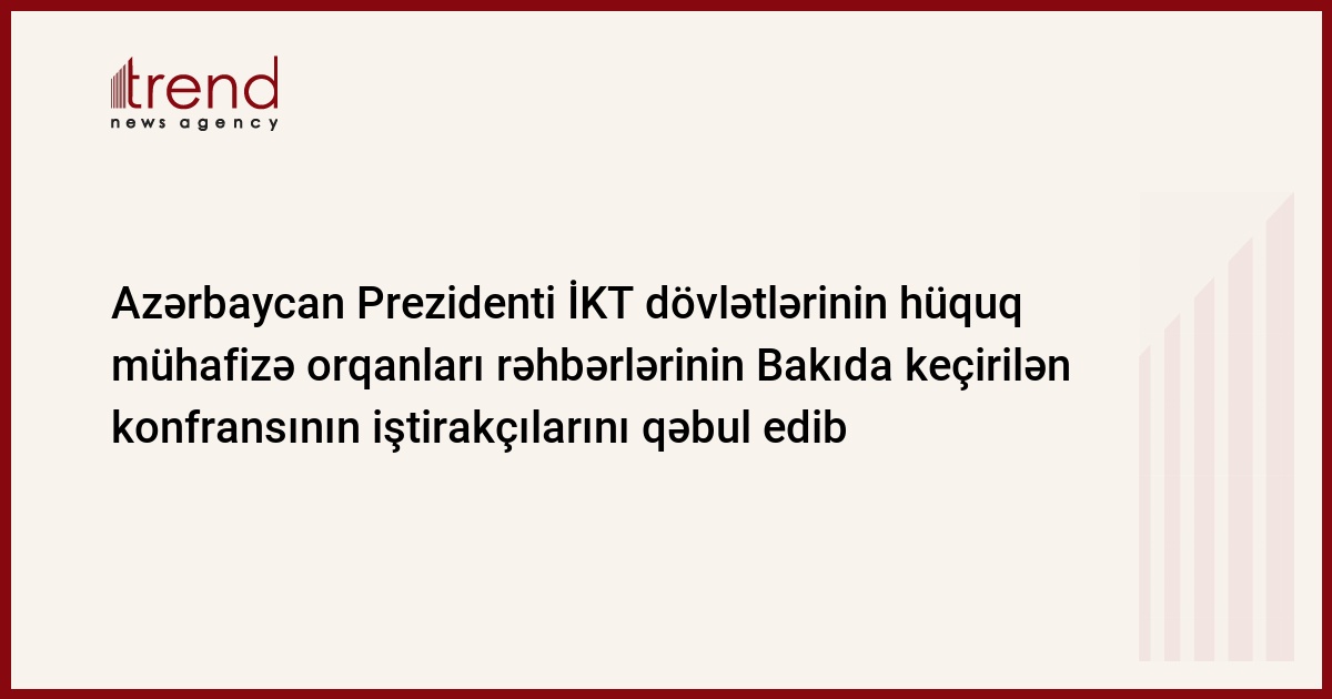 Azərbaycan Prezidenti İlham Əliyev çərşənbə axşamı İslam Konfransı Təşkilatının üzvü olan dövlətlərin hüquq-mühafizə orqanları rəhbərlərinin Bakıda keçirilən konfransının iştirakçılarını qəbul edib. Məlumatı AzərTAc Dövlət İnformasiya Agentliyi yayıb. Dövlət başçısı qəbulda çıxış edib.