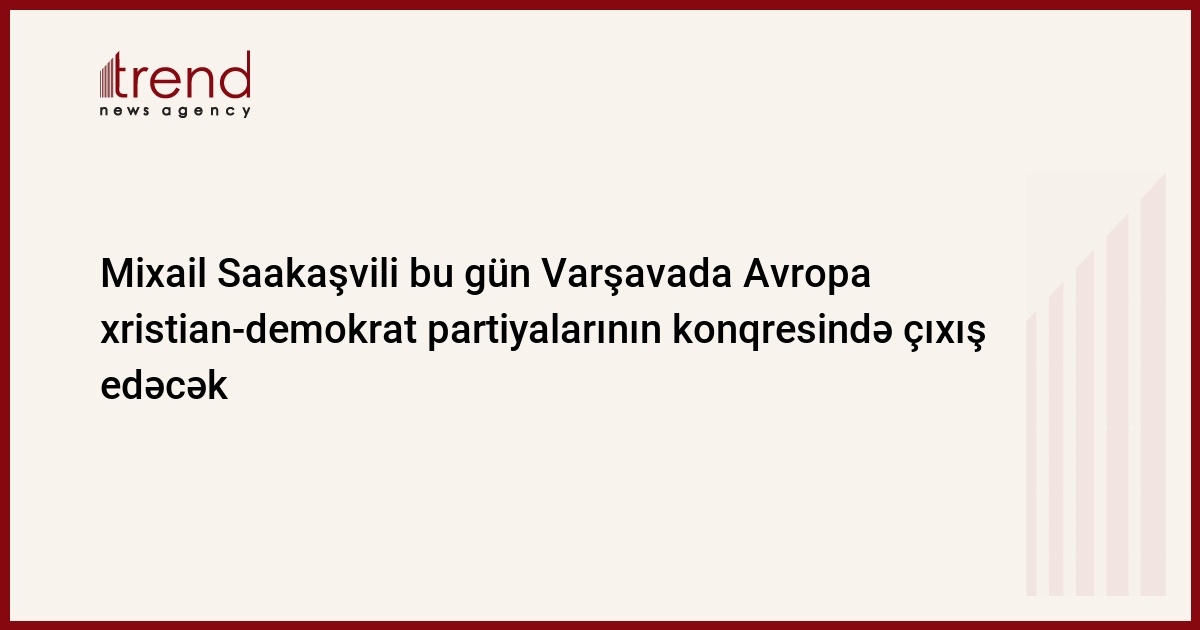 Gürcüstan Prezidenti Mixail Saakaşvili cümə axşamı Varşavada, Avropa xristian-demokrat partiyalarının konqresində məruzə ilə çıxış edəcək. İnterfaks-a Prezident Administrasiyasından verilən məlumata görə, Saakaşvili konqresdə birinci çıxış edəcək və Gürcüstan-Rusiya müharibəsinə öz baxışını bildirəcək.