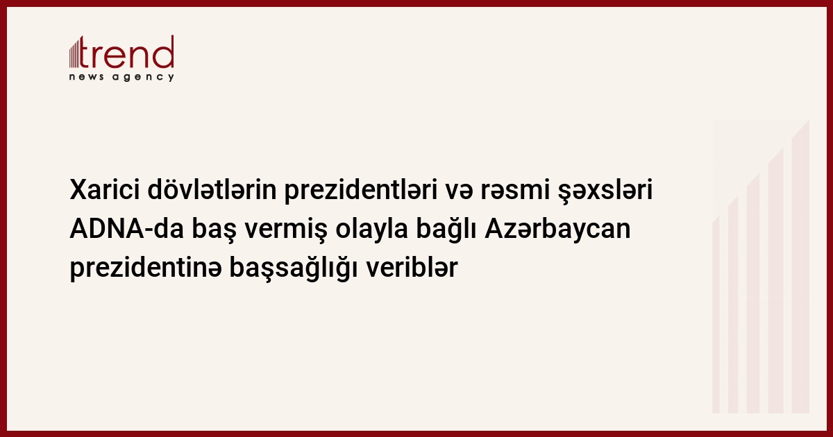Azərbaycan Dövlət Neft Akademiyasında (ADNA) baş vermiş dəhşətli faciə ilə bağlı xarici dövlətlərin prezidentlərindən və hökumət üzvlərindən Azərbaycan prezidenti İlham Əliyevə başsağlığı məktubları gəlməkdədir.