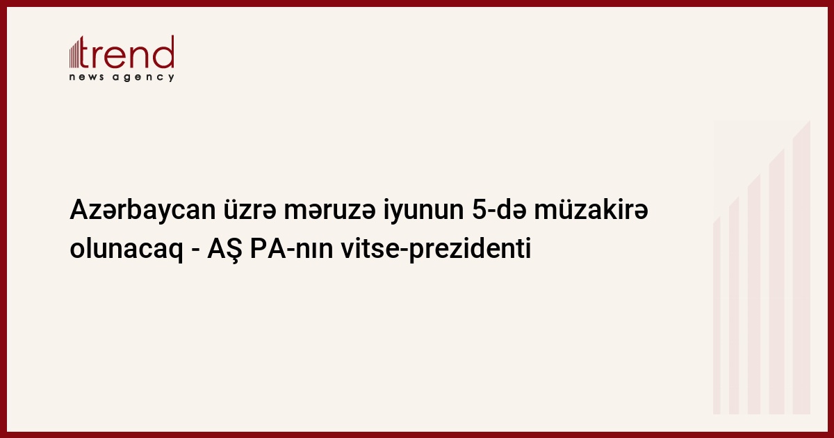 "Məruzə AŞ PA-nın Monitorinq Komitəsinin iyunun 5-də Parisdə keçriləcək növbəti iclasında müzakirə olunacaq", - Seyidov bildirib.