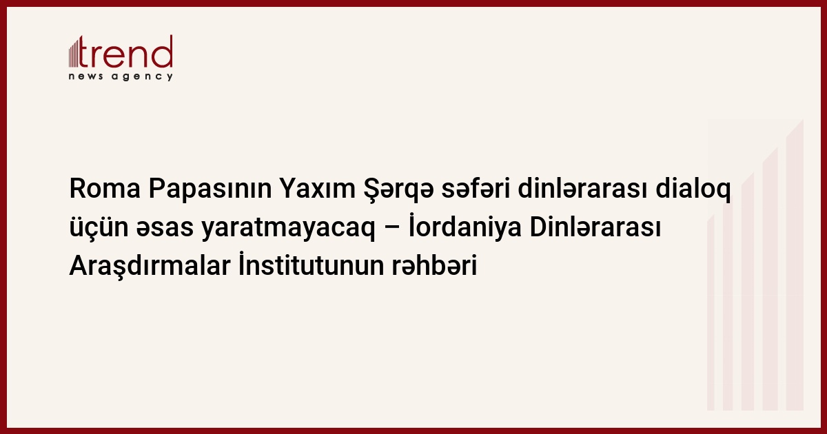 "Roma Papasının səfəri xaçpərəstlərlə müsəlmanlar arasında dialoqun başlanğıcı demək deyil, çünki dialoq çoxdan mövcuddur. Papanın səfəri dini baxımdan vacib olsa da istərdik ki, bu səfər siyasi xarakter daşısın, çünki məsələnin bu tərəfi insanları daha çox narahat edir", - Trend -a telefon bağlantısı zamanı Əmmandan Əbu Nemət bildirib.