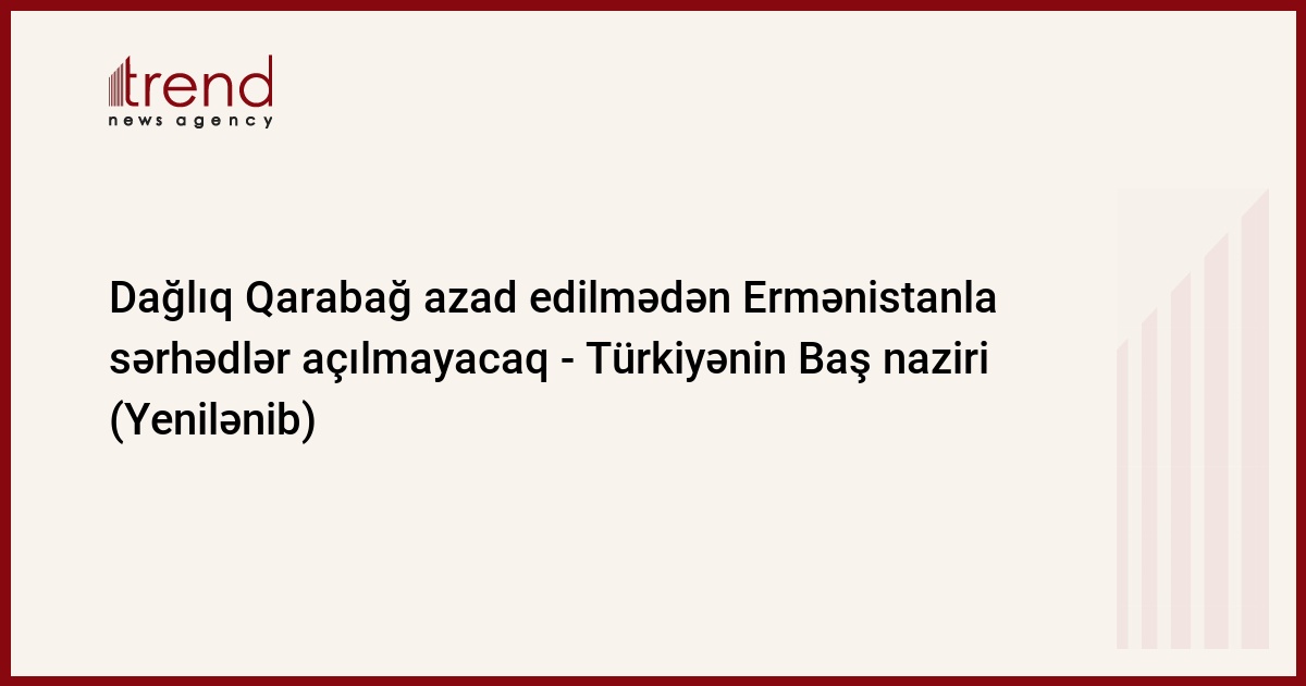 Türkiyənin Baş naziri Rəcəb Tayyib Ərdoğan Bakıda keçirdiyi mətbuat konfransında bildirib ki, Türkiyə-Ermənistan sərhədi Dağlıq Qarabağ işğaldan azad edilməyincə açılmayacaq.Bu haqda Türkiyənin CNN TÜRK telekanalı məlumat verib.