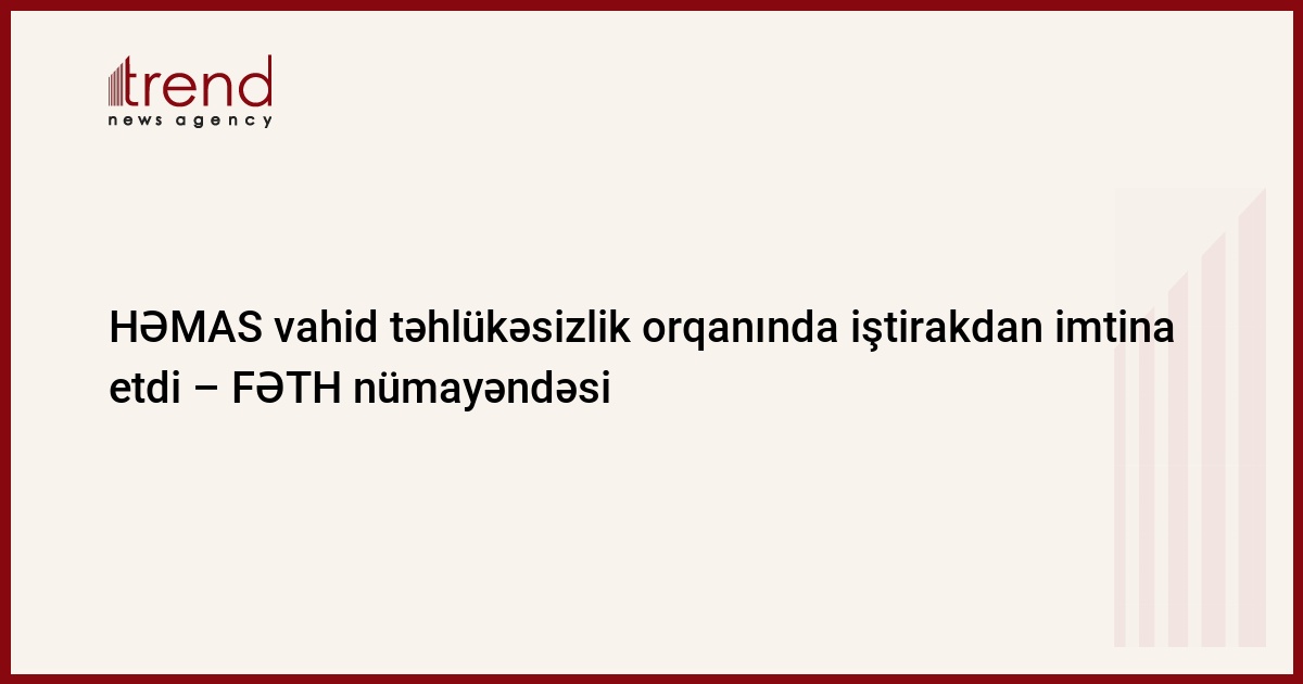 HƏMAS hərəkatı Qəzza zolağında nəzarəti ələ alacaq vahid təhlükəsizlik orqanının yaradılması prosesində iştirakdan imtina etdi. Bu barədə hakim partiya FƏTH-in rəsmi nümayəndəsi Ziya Əbu Eyn Trend -a deyib.